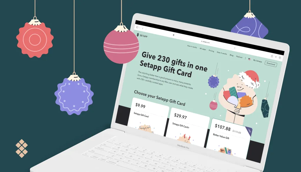 Setappギフトカードのご紹介 – MacPawが提供する画期的なアプリサブスクリプションサービスをギフトとして贈るのに最適です。SetappはMacユーザーに最高のツールを提供し、Macのポテンシャルを最大限に引き出します。詳しくは下記をご覧ください。
