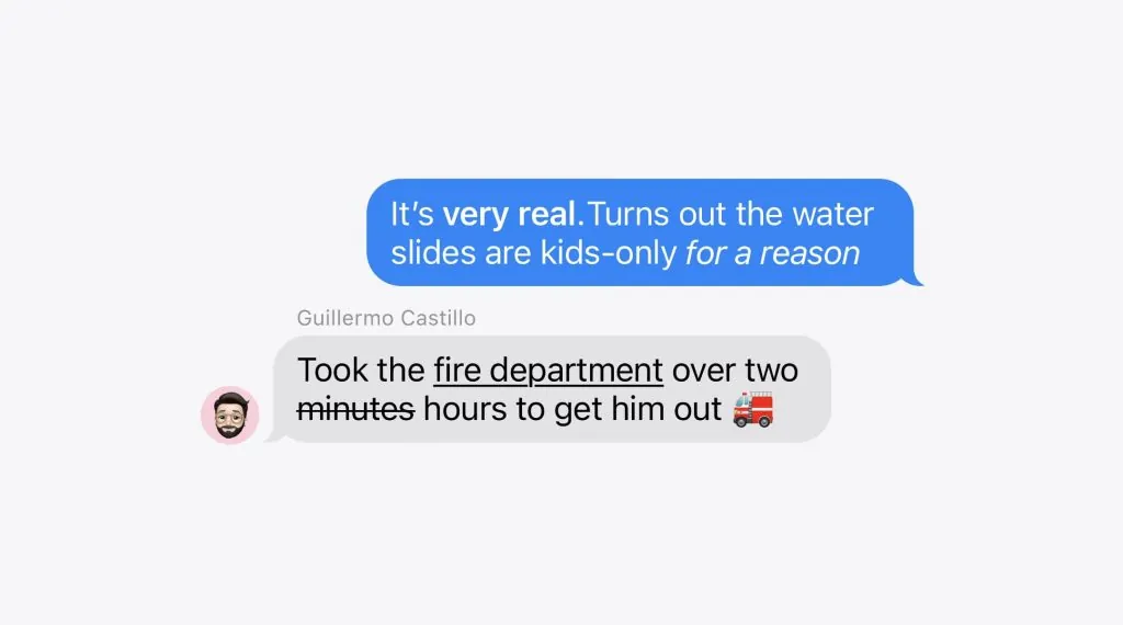 - メッセージ アプリでは、Tapbacks が再設計され、どの絵文字やステッカーでもタップして返せるようになりました。